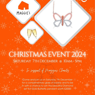 In 2024 we decided to raffle the above pictured butterfly pendant for Charity. The pendant was designed and hand finished here on-site here at Woods Jewellers. This stunning pendant is 9ct Rose and White Gold, the body is set with Orange Sapphires, while the bottom wings are set with Diamonds. There is so much meaning behind this design, that it actually has it's own dedicated blog post! Click here to read more. A huge thank you to everyone who entered the raffle and braved the weather to attend our event day, together we raised over £1000 for the wonder charity Maggie's.